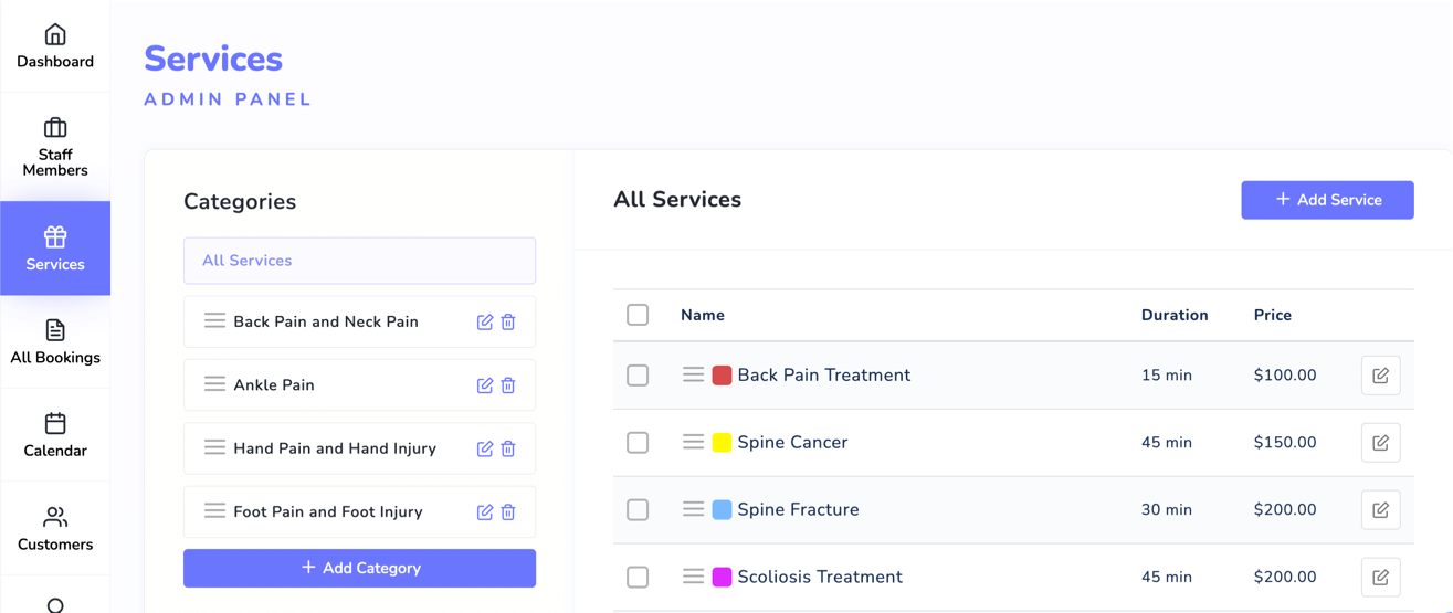 - Go to Bookme menu > Services page; here, you will get a list of services.