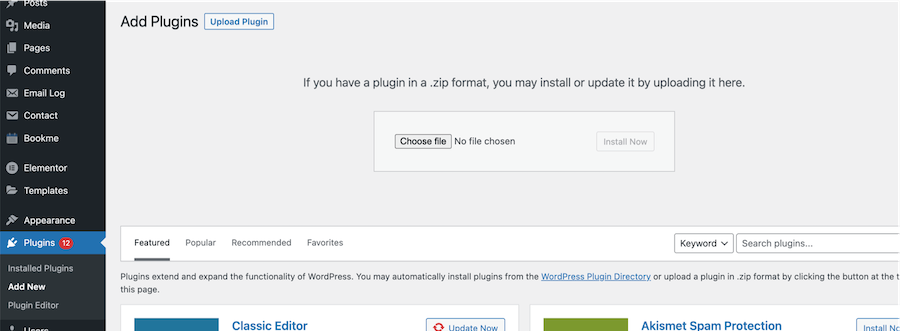 - Upload the bookme.zip plugin file and activate the Bookme plugin.