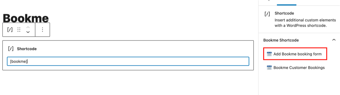 To publish the Bookme booking form, you can insert the [bookme] shortcode on any page or post. It will render a default booking form.