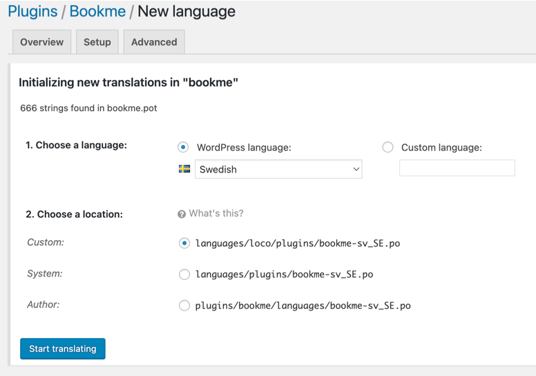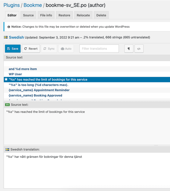 How to translate the Bookme plugin?