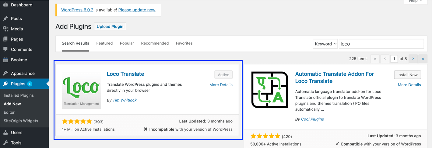 - Go to Loco translate menu > Plugins.