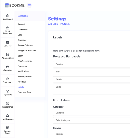 - Go to Bookme menu > Settings > Labels.